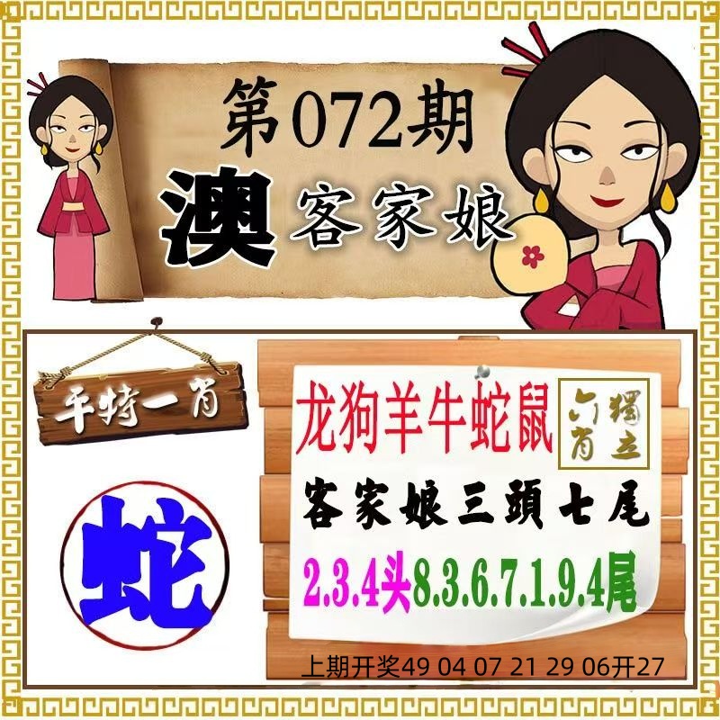 | 072期:九肖 | 蛇鼠牛鸡狗虎羊猴猪 | 开:准00 |