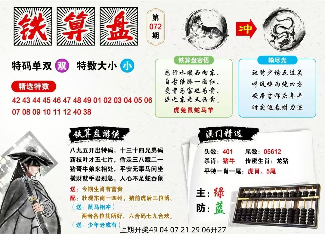 | 072期:平特一肖【龙龙龙】 开:准00 |